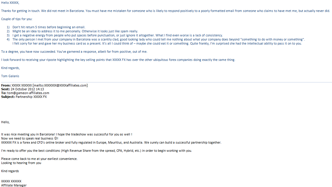 So why then, would they trust you, a badly lazy individual, to spearhead the launch of your service to the affiliate community. The company’s only be going a short while, so it’s not like you’ve even had time to become disheartened enough to completely disengage from all sense of positive action and attitude. I’m sorry, but it is “efforts” like this that keep affiliate managers, in general, at junior to middle management and affiliate programs as the cheap alternative to proper marketing in the eyes of senior management.