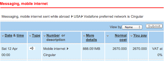 Ridiculous, but there was an obvious solution. I logged in to my Vodafone account to have the answers ready for the next £1.50/min call. Holy mother of God. I don’t think I’ll ever forget what I saw. The single data session, totalling 888.051MB and lasting no more than 20 minutes had cost added £2670 to my bill!